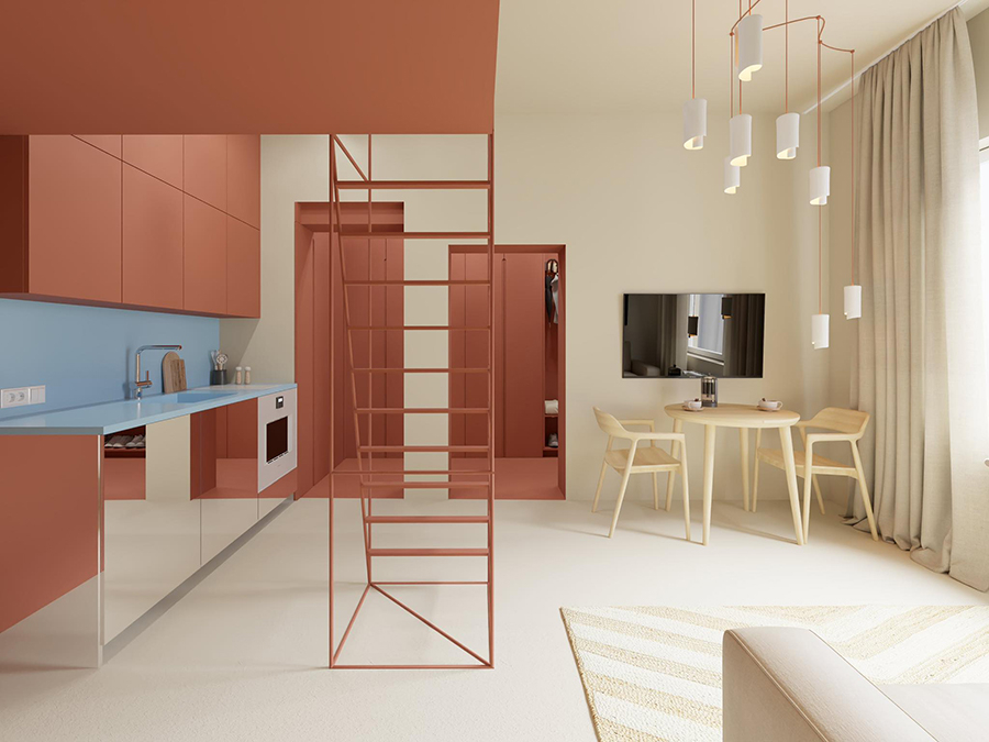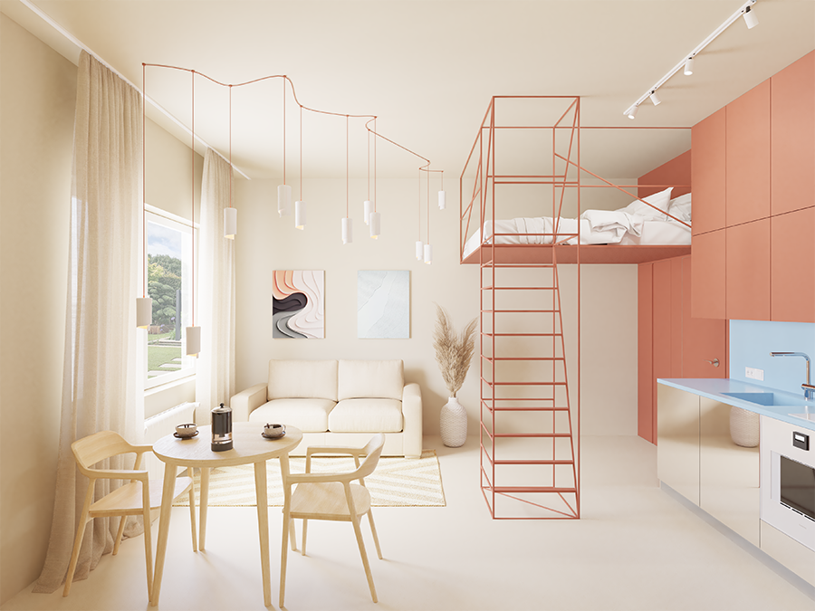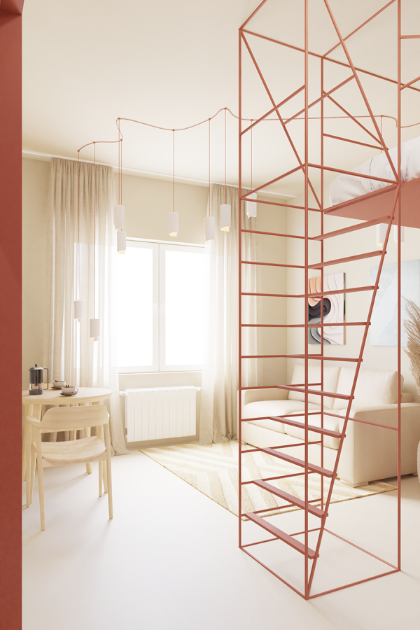 Този апартамент се намира на един от централните булеварди в София. Разположен е на партерен етаж и до този момент е бил използван като аптека. Пространството беше разделено на два самостоятелни обекта. Единият ще бъде трансформиран в градски караван, предназначен за отдаване под наем чрез Airbnb, а другият, който нарекохме Terracotta, ще се използва както за обитаване, така и за отдаване под наем.